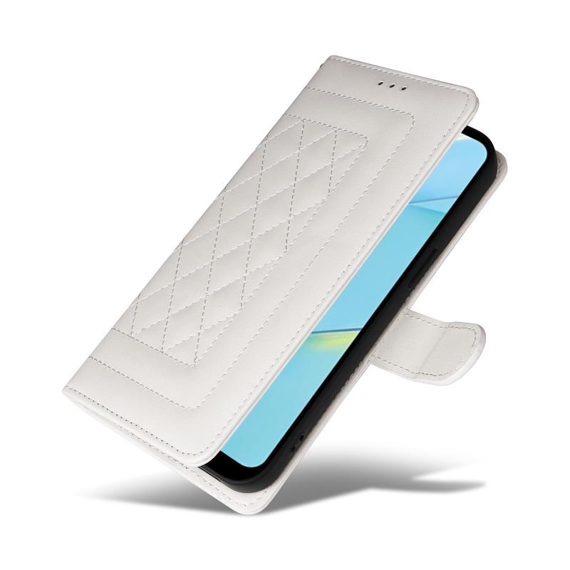 For OPPO A54 4G / A16 Diamond Lattice Leather Flip Phone Case(White)