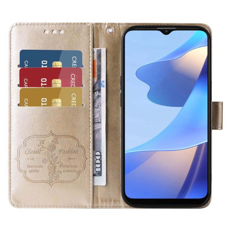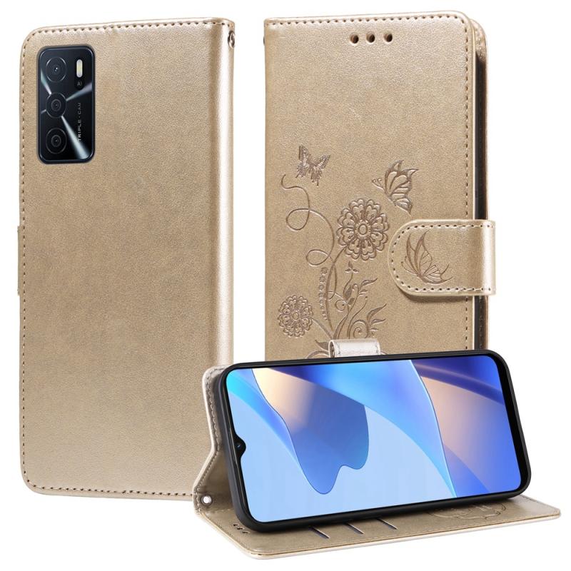 For OPPO A54 4G / A54s / A55 4G / 5G / A53s 5G Embossed Butterfly Flowers Leather Phone Case(Gold)