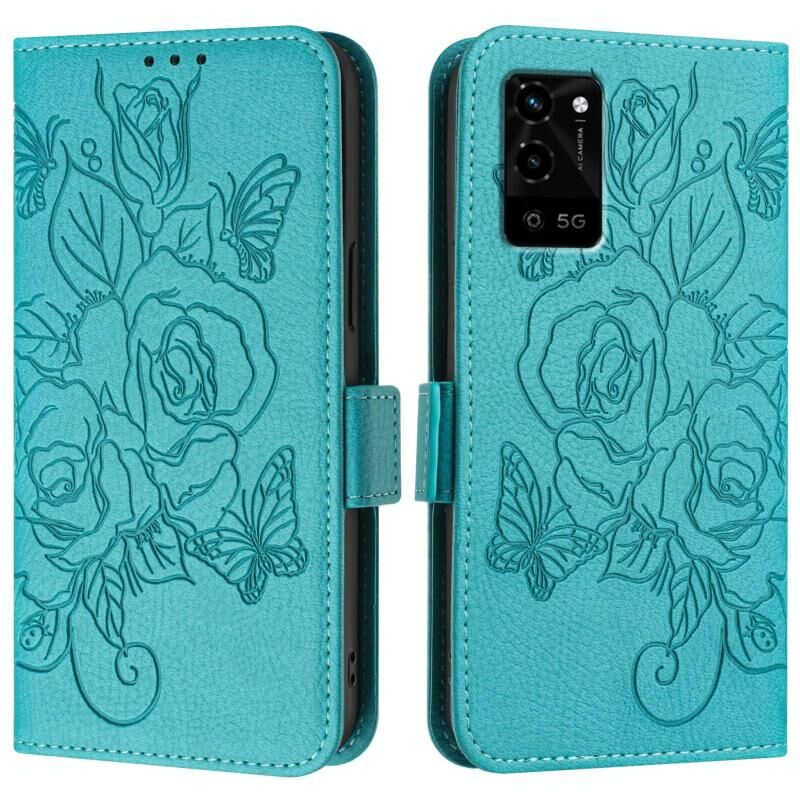 Για OPPO A54 4G / A54s / A55 5G / A16 Ανάγλυφο Rose RFID Anti-theft Δερμάτινη θήκη τηλεφώνου (Ανοιχτό μπλε)