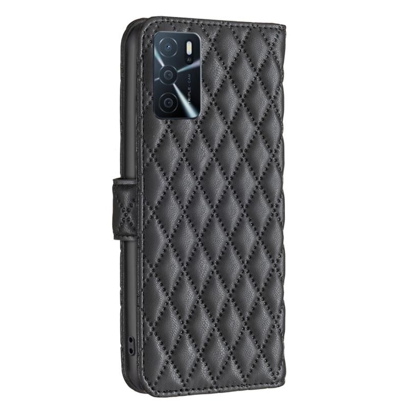 Για OPPO A54 4G / A55 5G / A16 Diamond Lattice πορτοφόλι δερμάτινη θήκη Flip τηλέφωνο (Μαύρο)