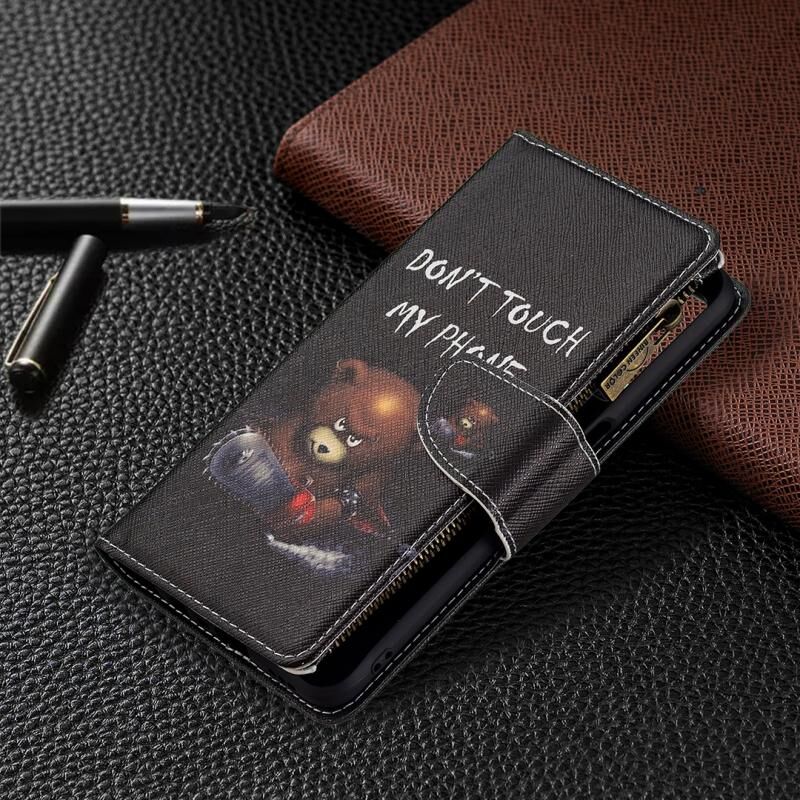 Θήκη δέρματος οριζόντιας αναδίπλωσης με φερμουάρ και σχέδια για OPPO A54 4G/A55 5G με βάση για κάρτες και πορτοφόλι (Αρκούδα)