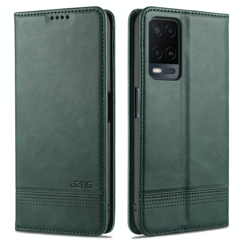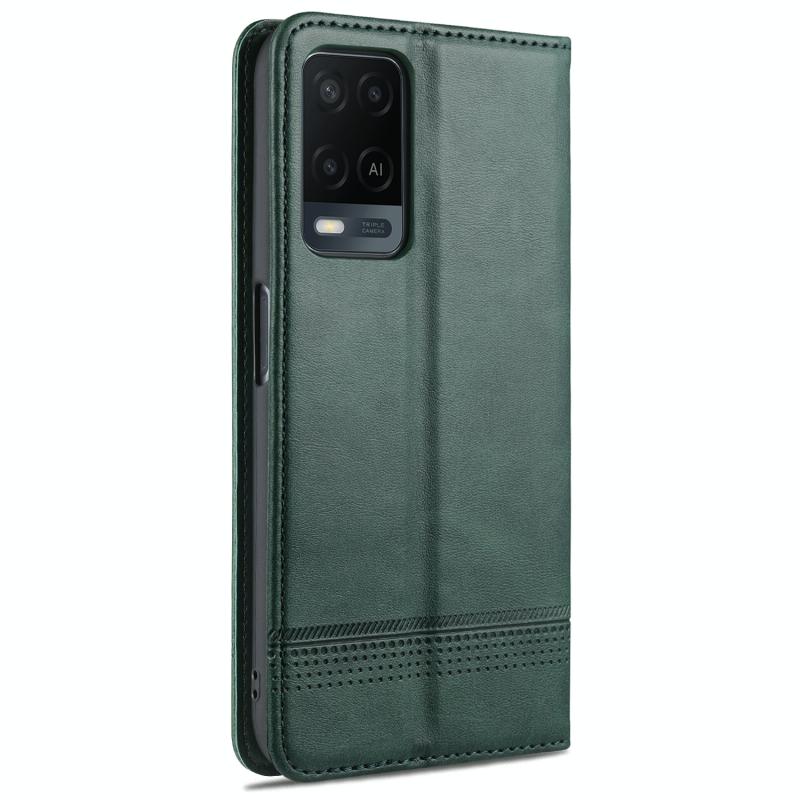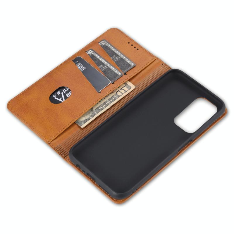 Θήκη δέρματος οριζόντιας αναδίπλωσης με μαγνητικό κλείσιμο και υφή μοσχαριού για OPPO A54 4G AZNS, με θήκες για κάρτες, στήριξη και λειτουργία πορτοφολιού (Σκούρο Καφέ) (AZNS)