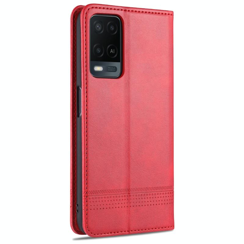 Θήκη δέρματος οριζόντιας αναδίπλωσης με μαγνητικό κλείσιμο και υφή μοσχαριού για OPPO A54 4G AZNS, με θήκες για κάρτες, στήριξη και λειτουργία πορτοφολιού (Σκούρο Καφέ) (AZNS)