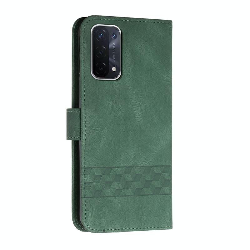 For OPPO A54 4G Cubic Skin Feel Flip Leather Phone Case(Dark Green)