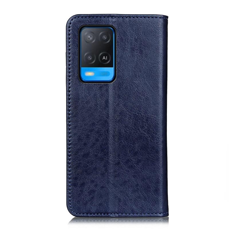 Θήκη δέρματος οριζόντιας αναδίπλωσης με μαγνητικό κλείσιμο και υφή Crazy Horse για OPPO A54 4G, με βάση στήριξης, θήκες καρτών και πορτοφόλι (Μπλε)