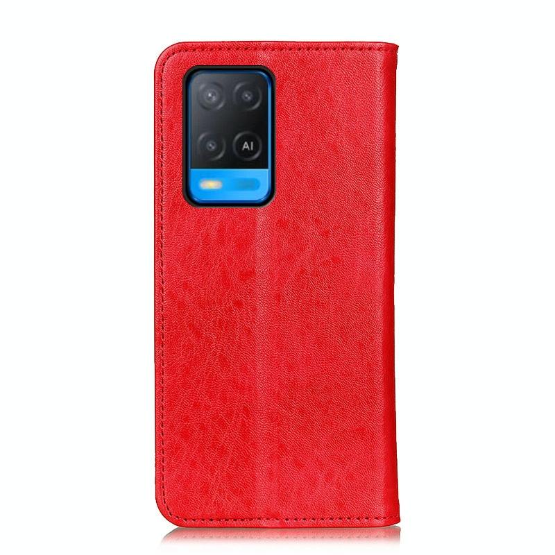 Θήκη δέρματος οριζόντιας αναδίπλωσης με μαγνητικό κλείσιμο και υφή Crazy Horse για OPPO A54 4G, με βάση στήριξης, θήκες καρτών και πορτοφόλι (Κόκκινο)