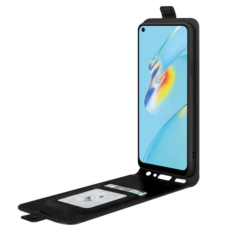 Θήκη προστασίας από δέρμα με κάθετη αναδίπλωση και υφή για OPPO A54 4G R64, με θήκες για κάρτες & κορνίζα φωτογραφιών (Μαύρο)