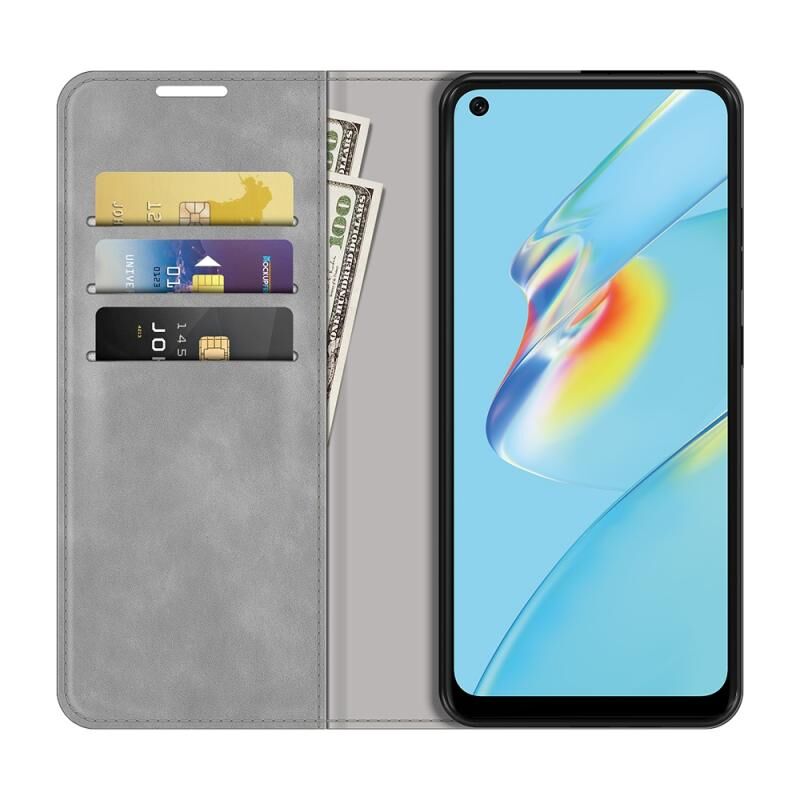 Θήκη δερμάτινη με μαγνητική απορρόφηση, vintage σχεδιασμού για OPPO A54 4G, με βάση στήριξης, θήκες για κάρτες και πορτοφόλι (Γκρι)