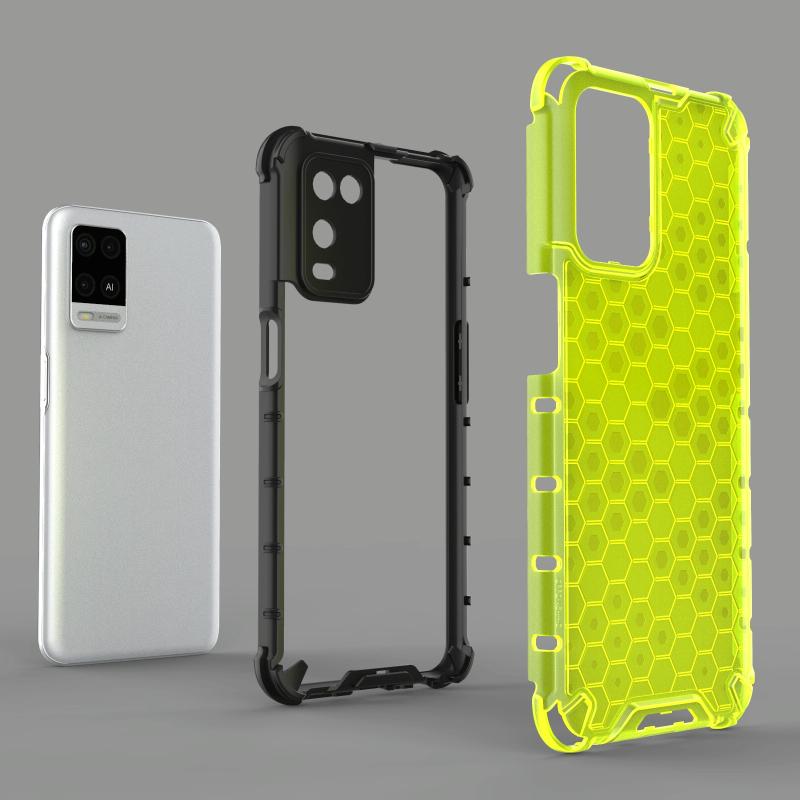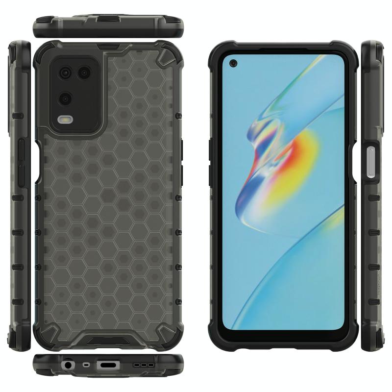 Θήκη για OPPO A54 4G ανθεκτική στις κρούσεις, από PC + TPU σε κυψελωτό σχέδιο (Μαύρο)