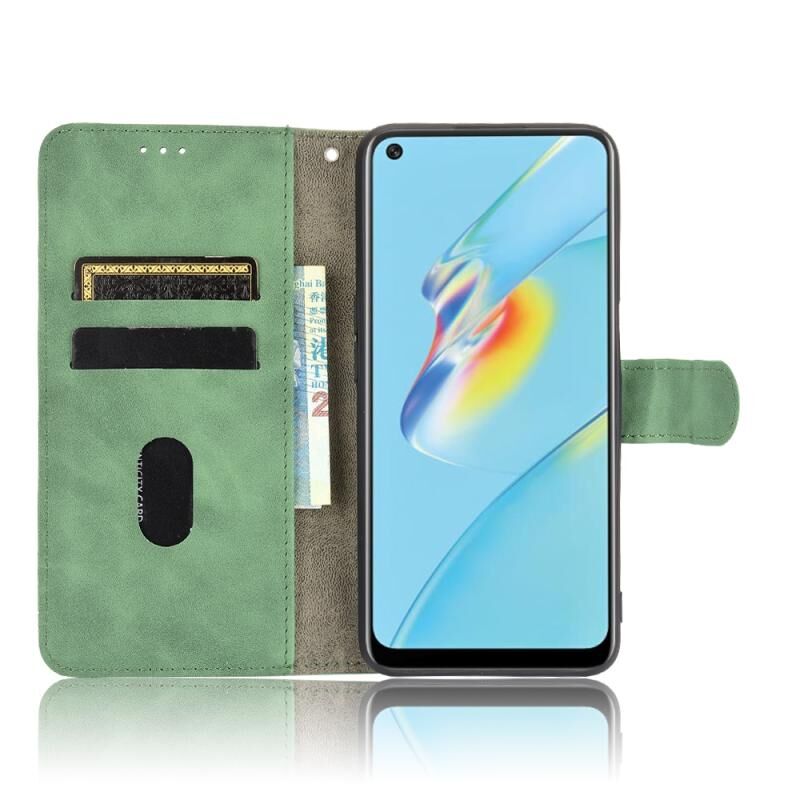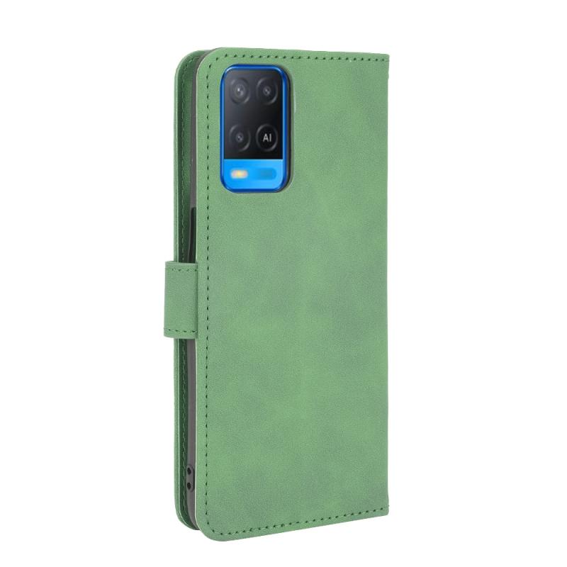 Θήκη για OPPO A54 4G, μονόχρωμη, με αίσθηση δέρματος, μαγνητικό κούμπωμα, οριζόντια, με υφή μοσχαριού, από δερματίνη PU, με βάση στήριξης & θήκες για κάρτες & πορτοφόλι (πράσινο)