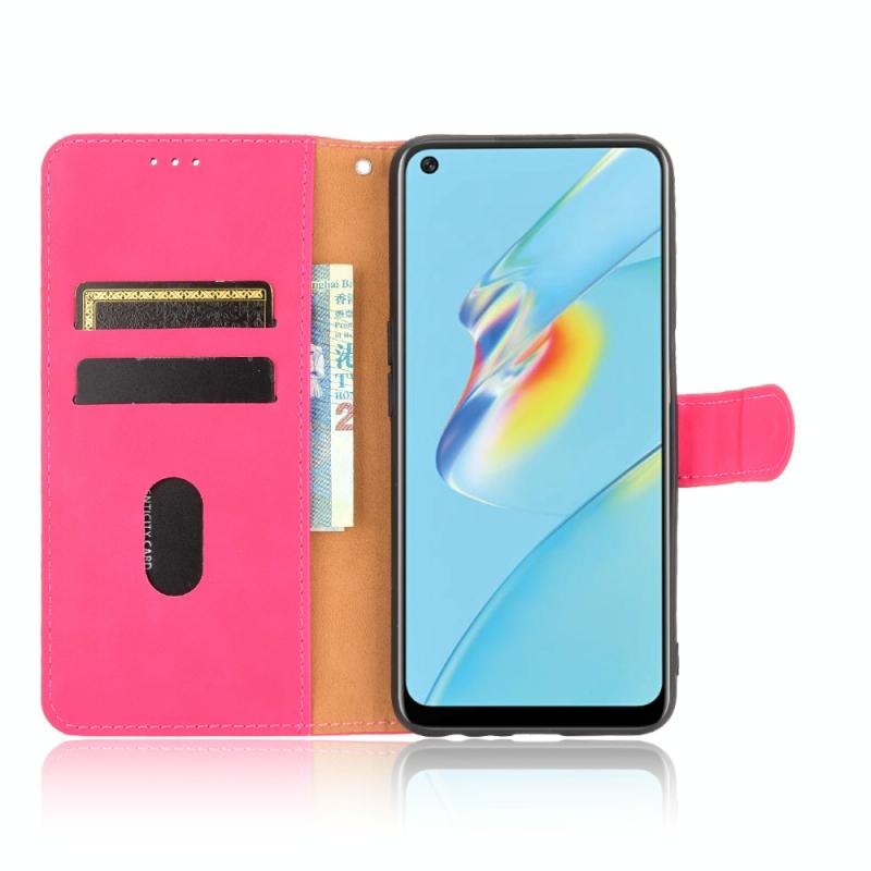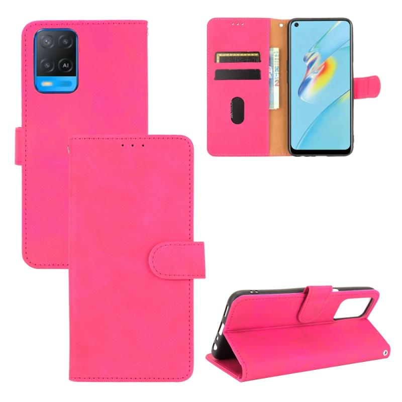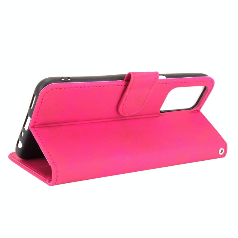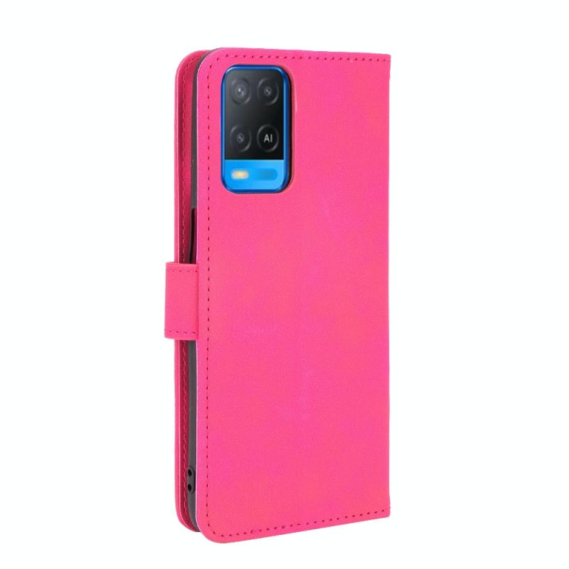Θήκη για OPPO A54 4G, μονόχρωμη, με αίσθηση δέρματος, μαγνητικό κούμπωμα, οριζόντια, με υφή μοσχαριού, από δερματίνη PU, με βάση στήριξης & θήκες για κάρτες & πορτοφόλι (Ροζέ κόκκινο)