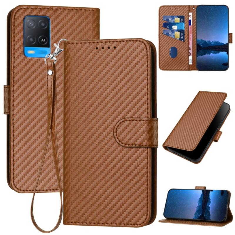 For OPPO A54 4G YX0070 Carbon Fiber Buckle Leather Phone Case with Lanyard(Coffee)