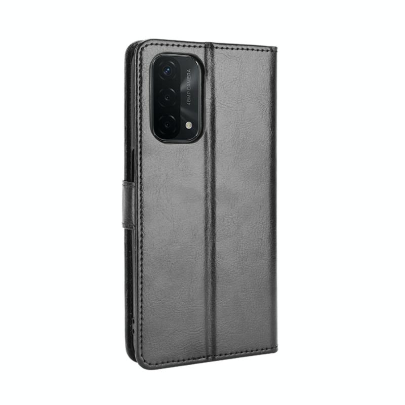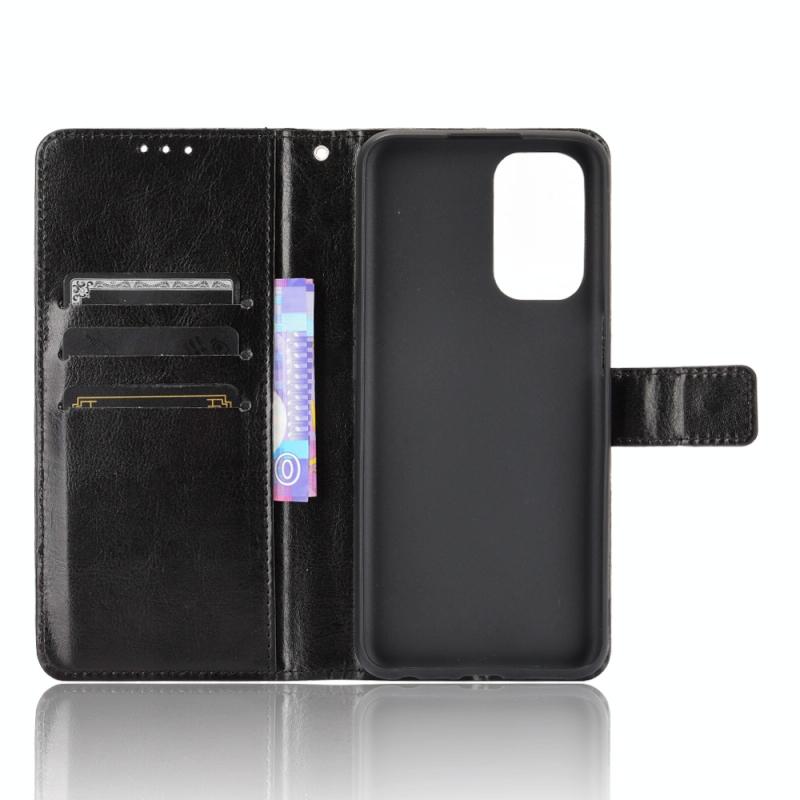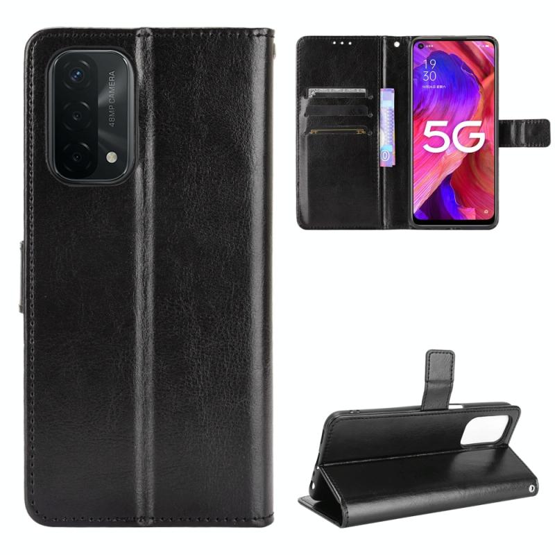 Θήκη δέρματος οριζόντιας αναδίπλωσης με υφή Crazy Horse για OPPO A54 5G / A74 5G / A93 5G με βάση στήριξης & υποδοχές καρτών & κορδόνι (Χρυσό)