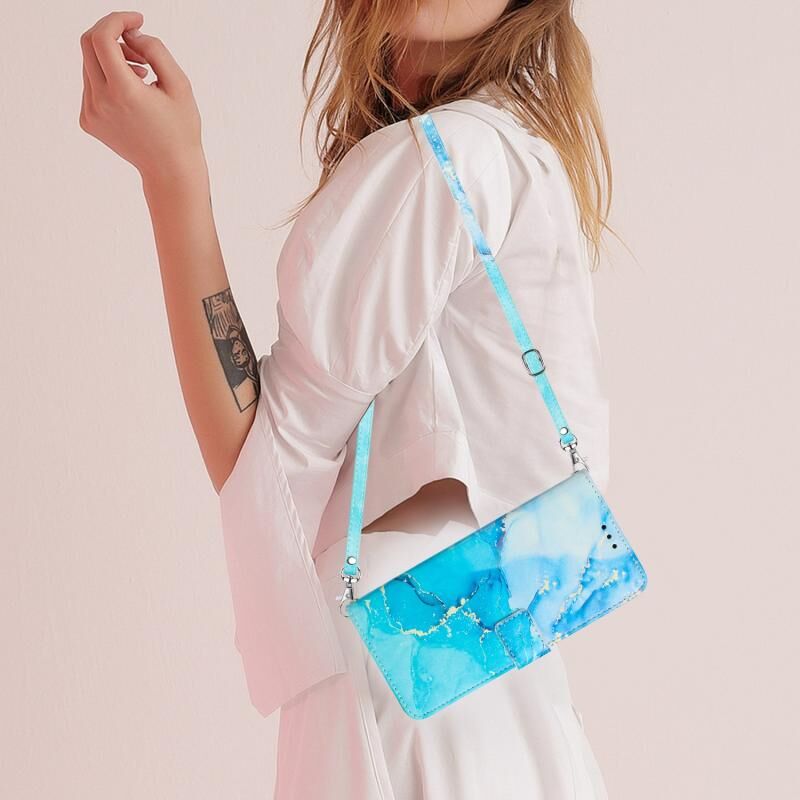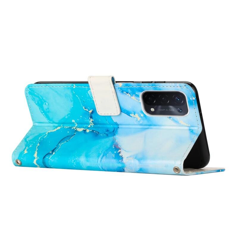 Θήκη τηλεφώνου από δέρμα με σχέδιο μαρμάρου και ζωγραφισμένο σχέδιο για OPPO A54 5G/A74 5G/A93 5G (Μπλε πράσινο)