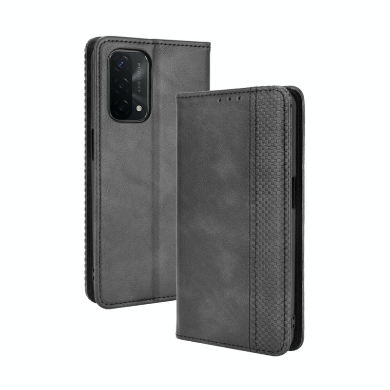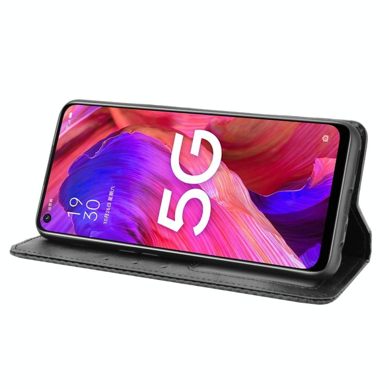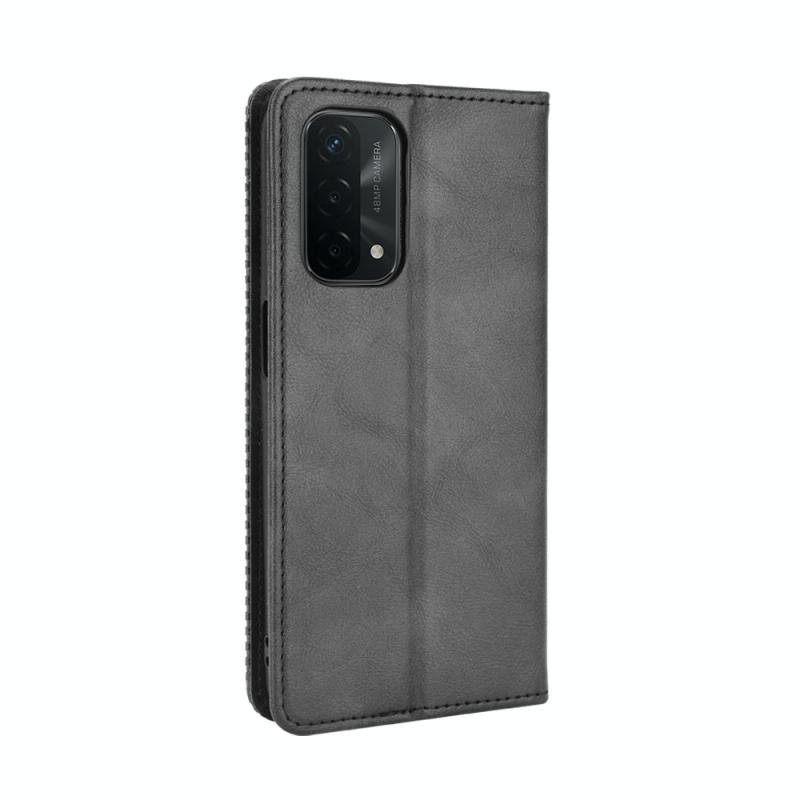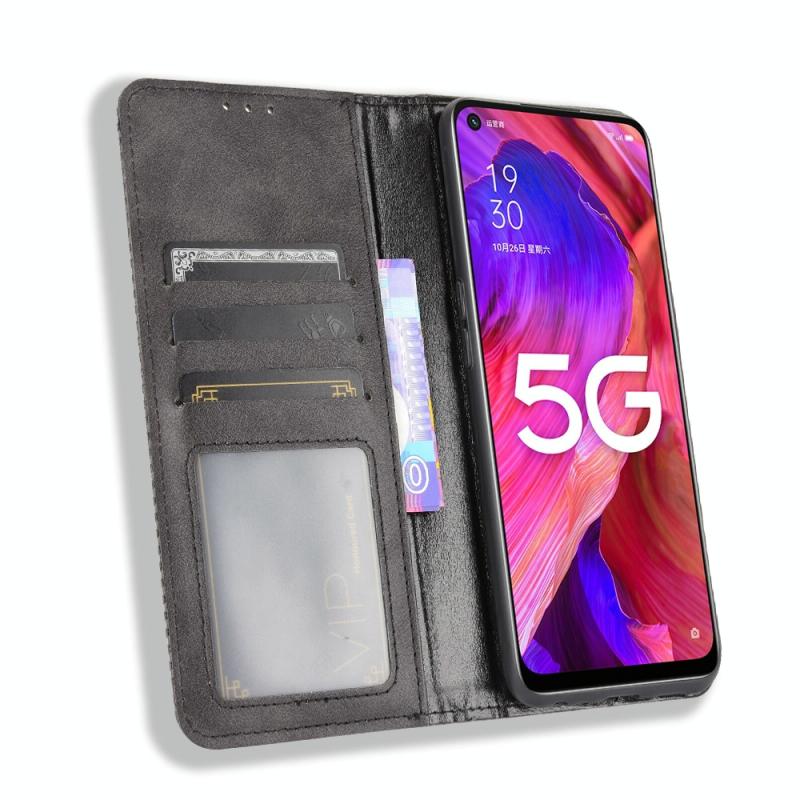 Για OPPO A54 5G / A74 5G / A93 5G Μαγνητική Θήκη με Αγκράφα, Ρετρό Υφή Crazy Horse, Οριζόντια Δερμάτινη Θήκη με Στήριξη & Θήκες Καρτών & Κορνίζα Φωτογραφιών (Κόκκινο)