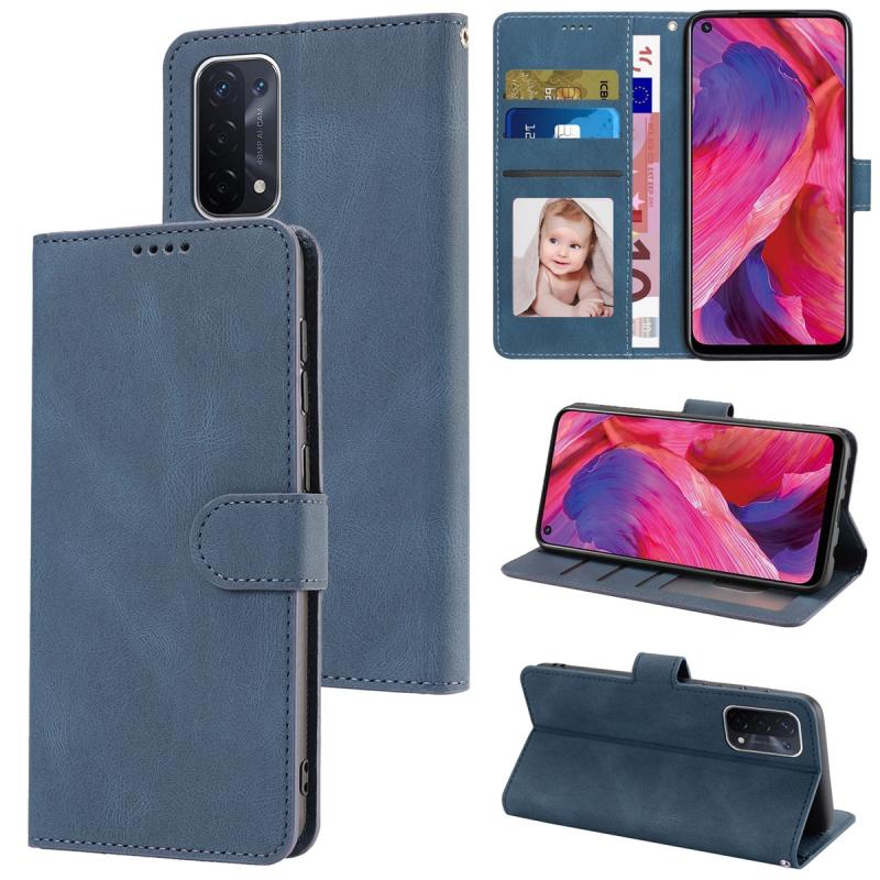 Θήκη τηλεφώνου από δέρμα μοσχαριού με φανταστική υφή (καφέ) για OPPO A54 5G / A74 5G / A93 5G / OnePlus Nord N200 5G (Μπλε)