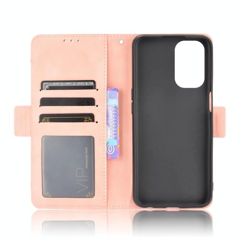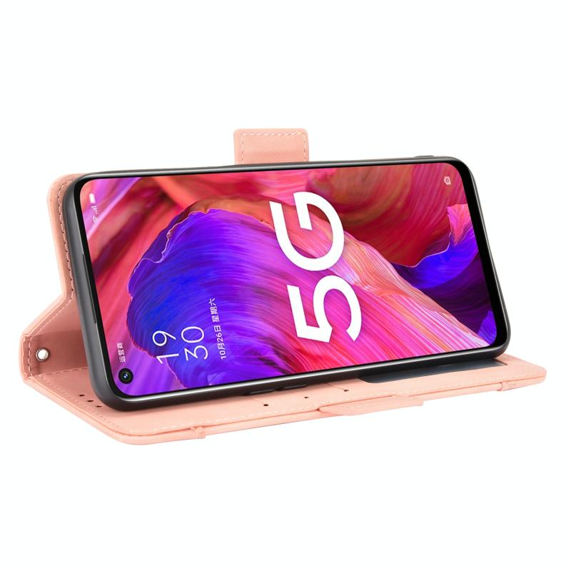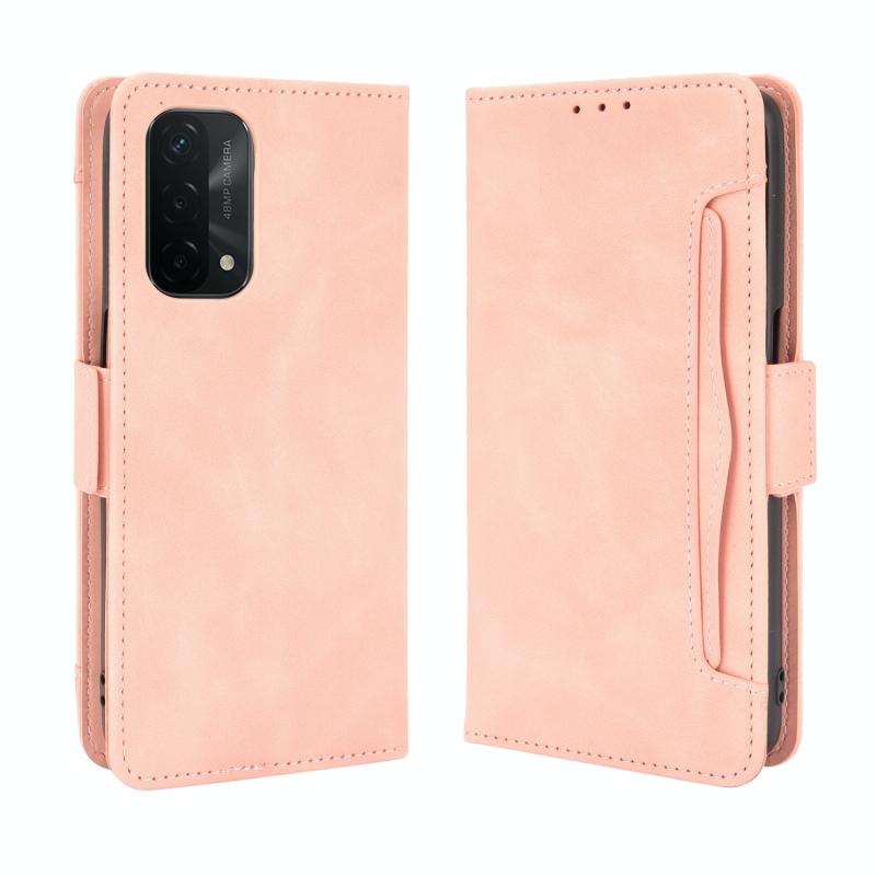 Θήκη δέρματος οριζόντιας αναδίπλωσης με υφή δέρματος μοσχαριού για OPPO A54 5G / A74 5G / A93 5G με βάση & υποδοχές καρτών & κορνίζα φωτογραφιών (Ροζ)