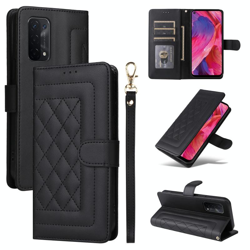 For OPPO A54 5G / A74 5G Diamond Lattice Leather Flip Phone Case(Black)