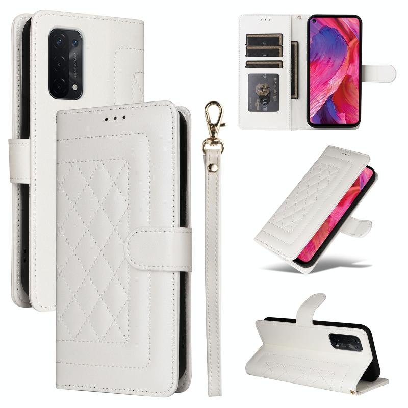 For OPPO A54 5G / A74 5G Diamond Lattice Leather Flip Phone Case(White)