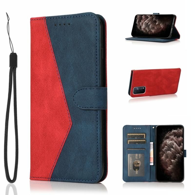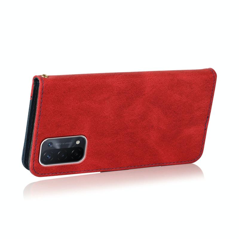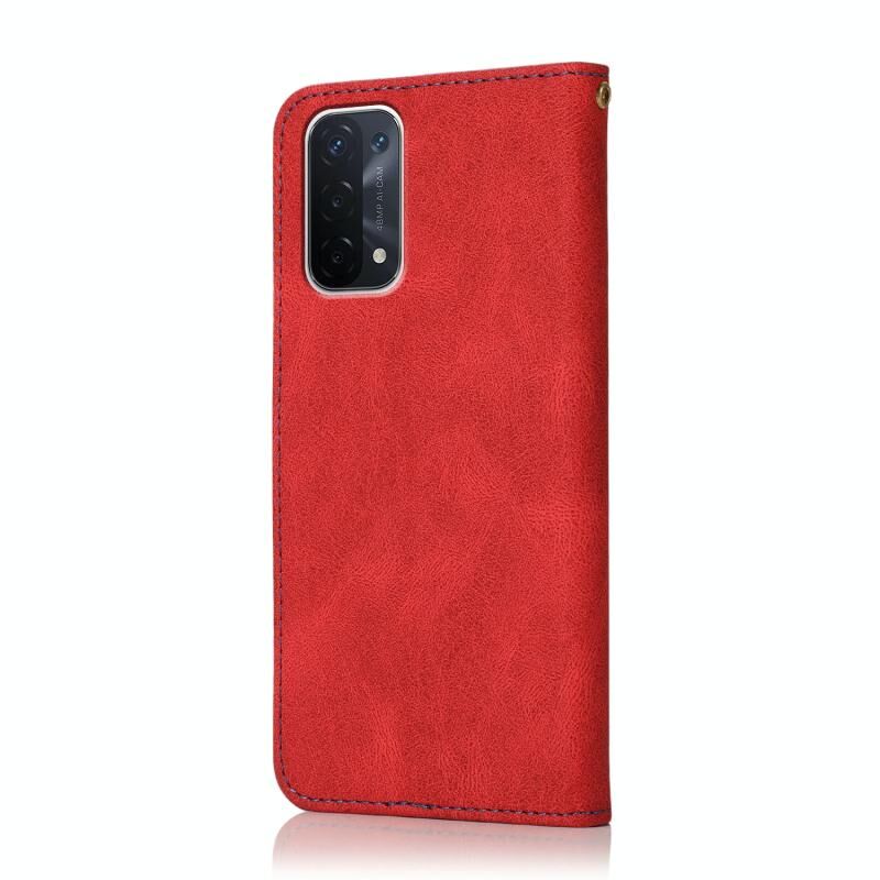 Θήκη τηλεφώνου από δέρμα με διχρωμία ραφής για OPPO A54 5G / A74 5G (Καφέ Κόκκινο)