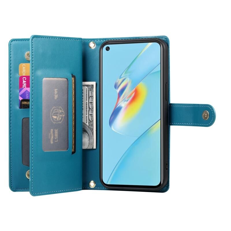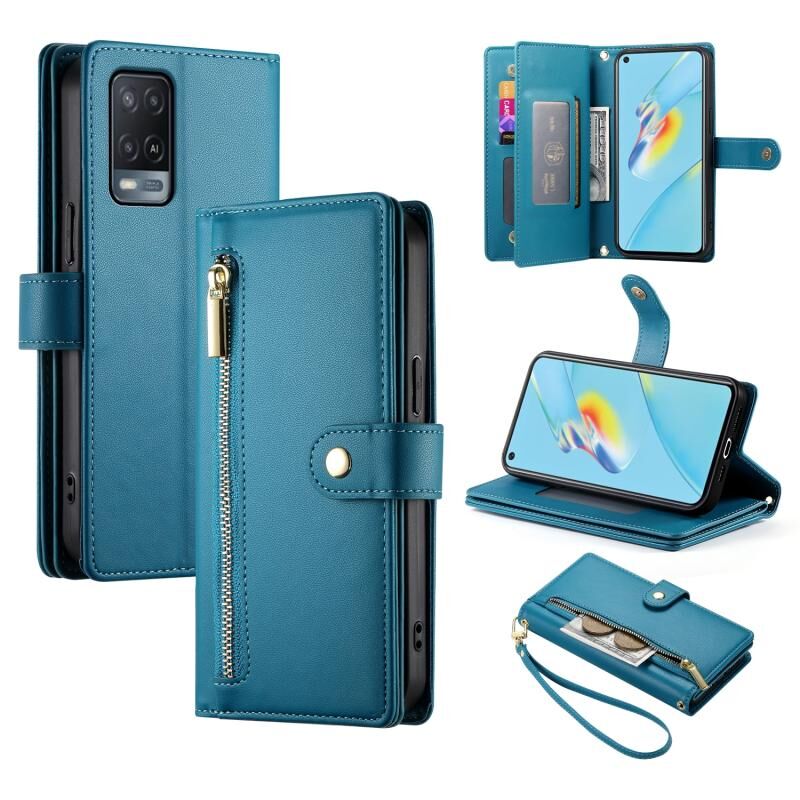 Για OPPO A54 / A54s / A55 5G / A16s / A53s Nine Card-slot φερμουάρ πορτοφόλι τσάντα δερμάτινη θήκη τηλεφώνου (Μπλε)