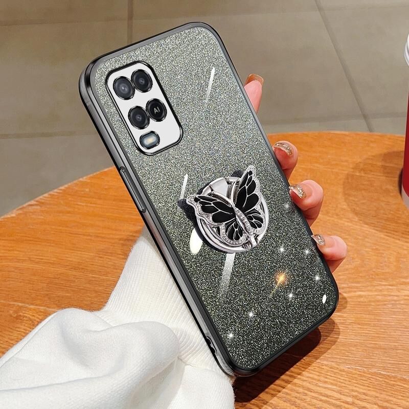 Για OPPO A54 Επιμεταλλωμένο διαβάθμιση Glitter πεταλούδα κάτοχος TPU τηλέφωνο υπόθεση (μαύρο)