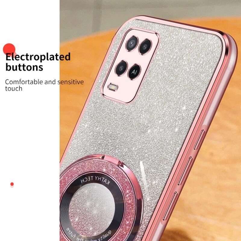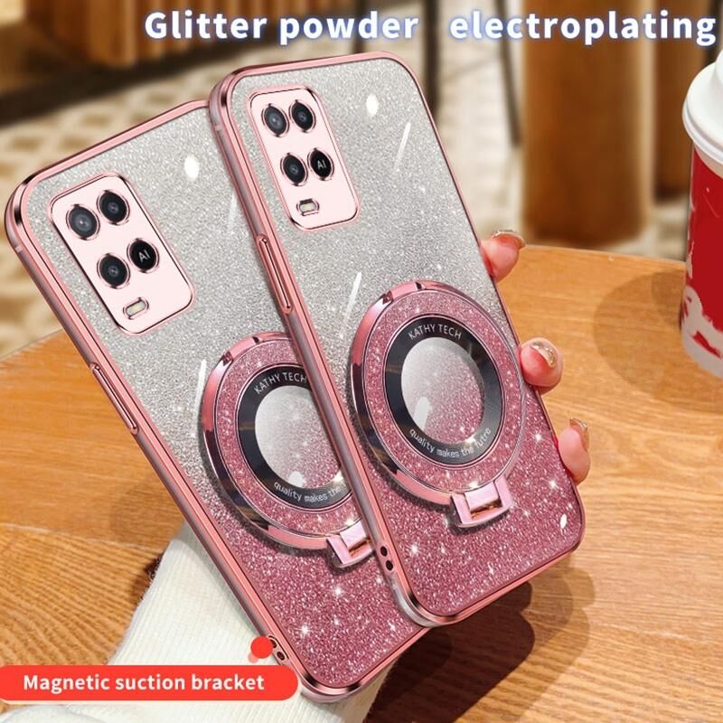 Θήκη κινητού τηλεφώνου OPPO A54 από TPU με επιμετάλλωση, διαβαθμισμένη λάμψη και στρογγυλό στήριγμα (Ροζ)