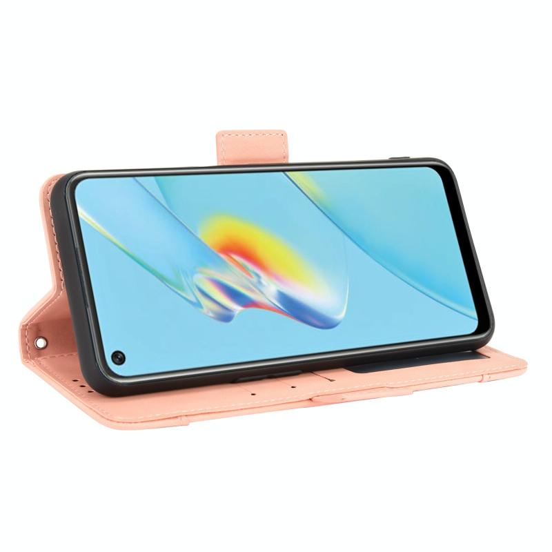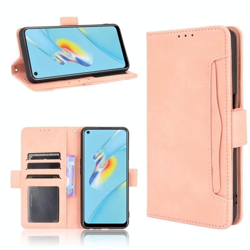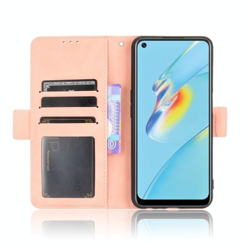 Θήκη δέρματος οριζόντιας αναδίπλωσης για OPPO A54 με υφή δέρματος μοσχαριού, με βάση στήριξης & υποδοχές καρτών & κορνίζα φωτογραφιών (Ροζ)