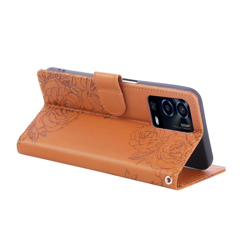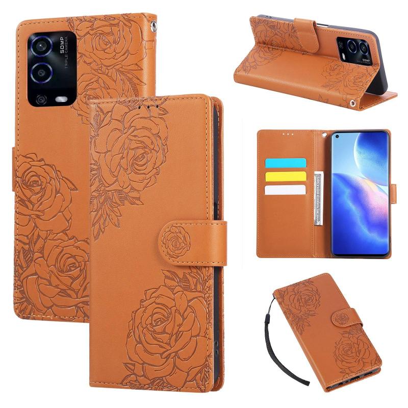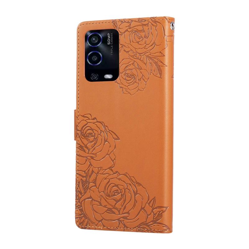 For OPPO A55 4G / 5G / A54 4G Rose Flower Embossed 3-Card Slots Leather Phone Case(Brown)