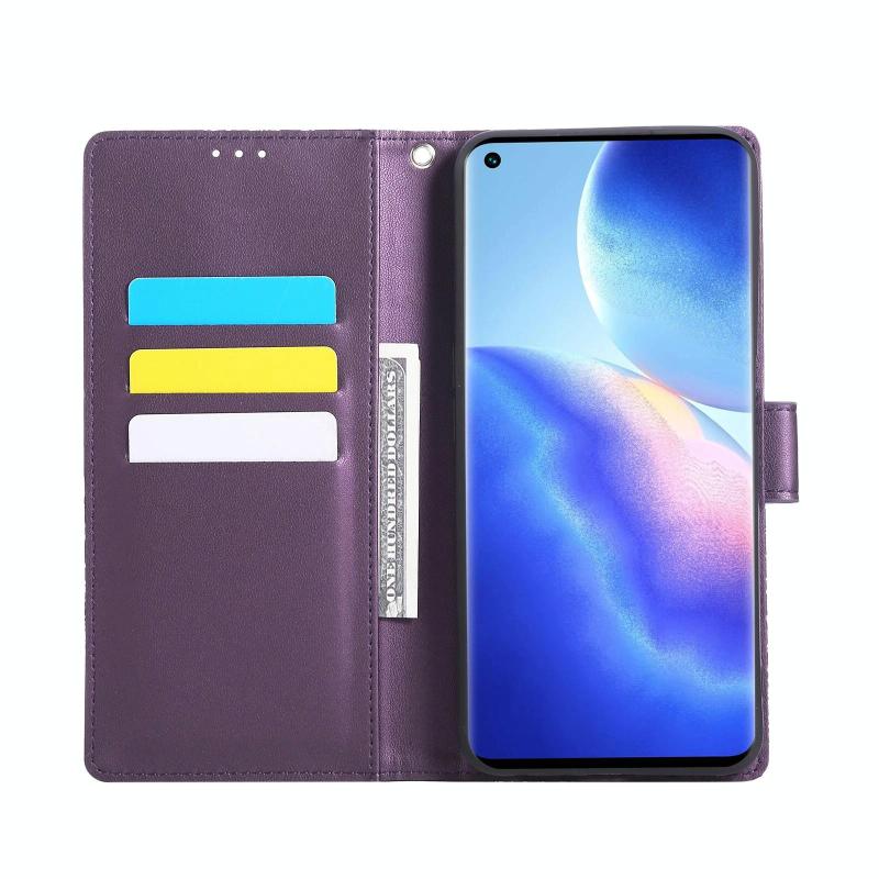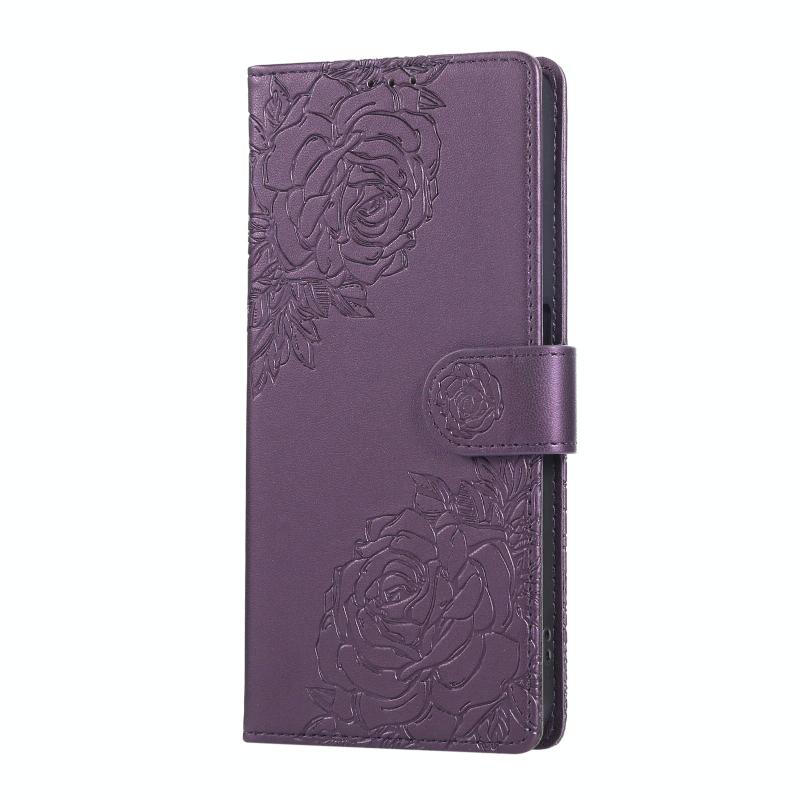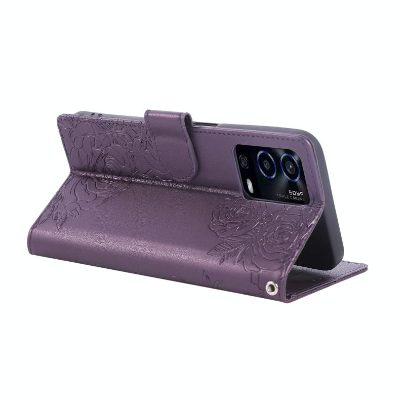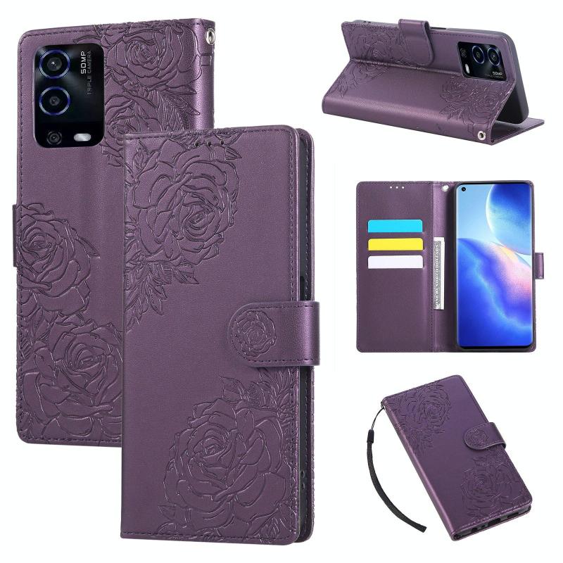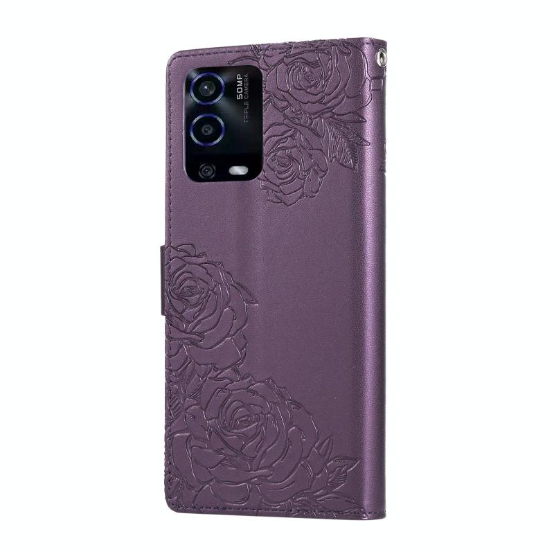 For OPPO A55 4G / 5G / A54 4G Rose Flower Embossed 3-Card Slots Leather Phone Case(Deep Purple)