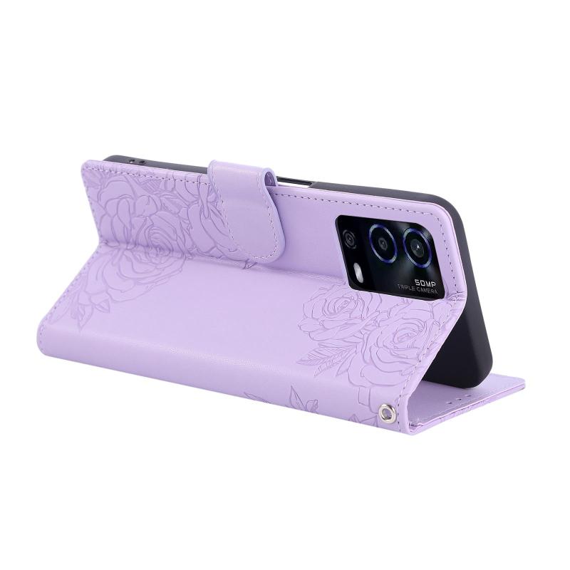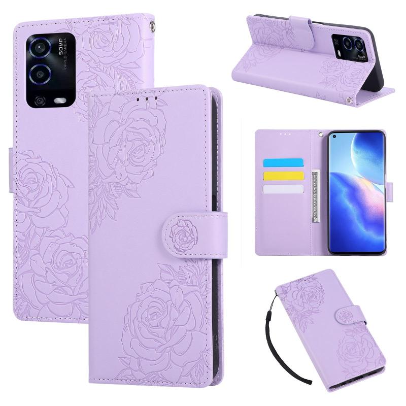 For OPPO A55 4G / 5G / A54 4G Rose Flower Embossed 3-Card Slots Leather Phone Case(Purple)