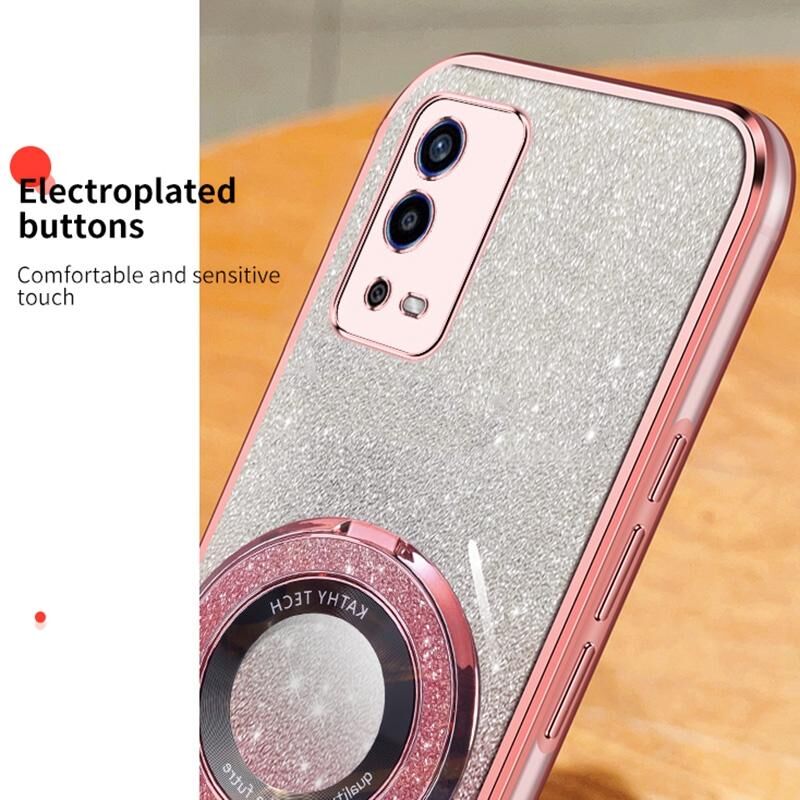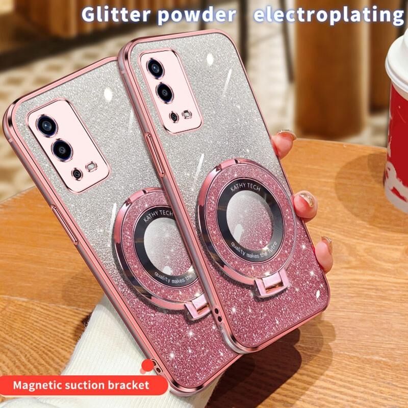 Θήκη κινητού τηλεφώνου OPPO A55 4G από TPU με επιμετάλλωση, διαβαθμισμένη λάμψη και στρογγυλό στήριγμα (Ροζ)
