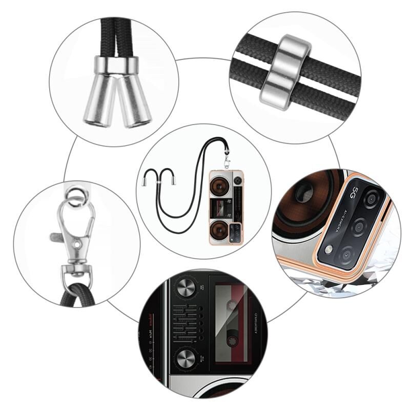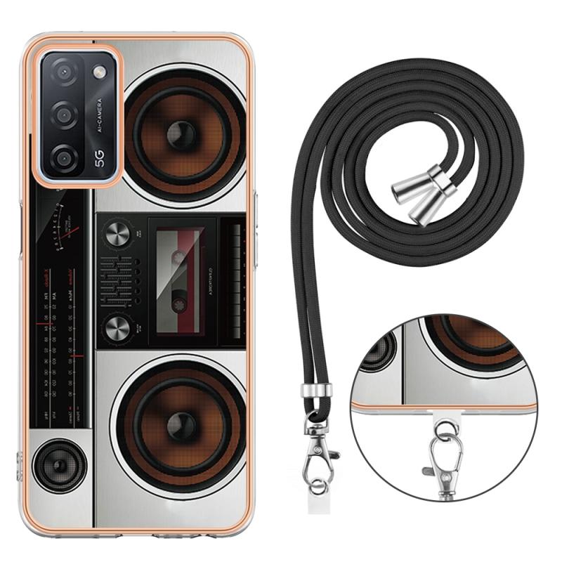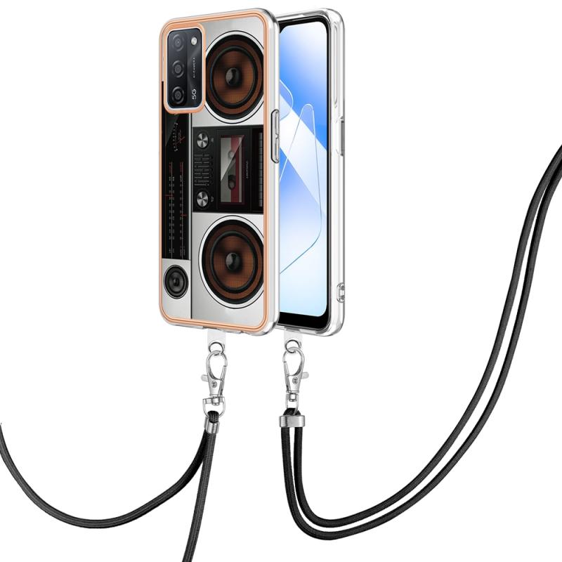 For OPPO A55 5G / A53s 5G / A54 4G Electroplating Dual-side IMD Phone Case with Lanyard(Retro Radio)