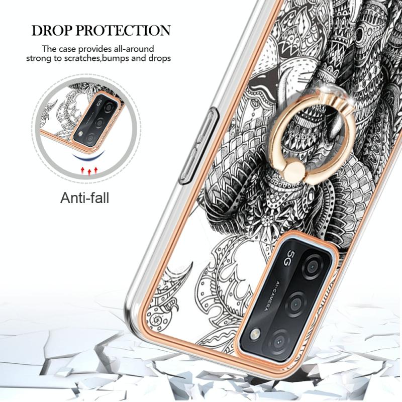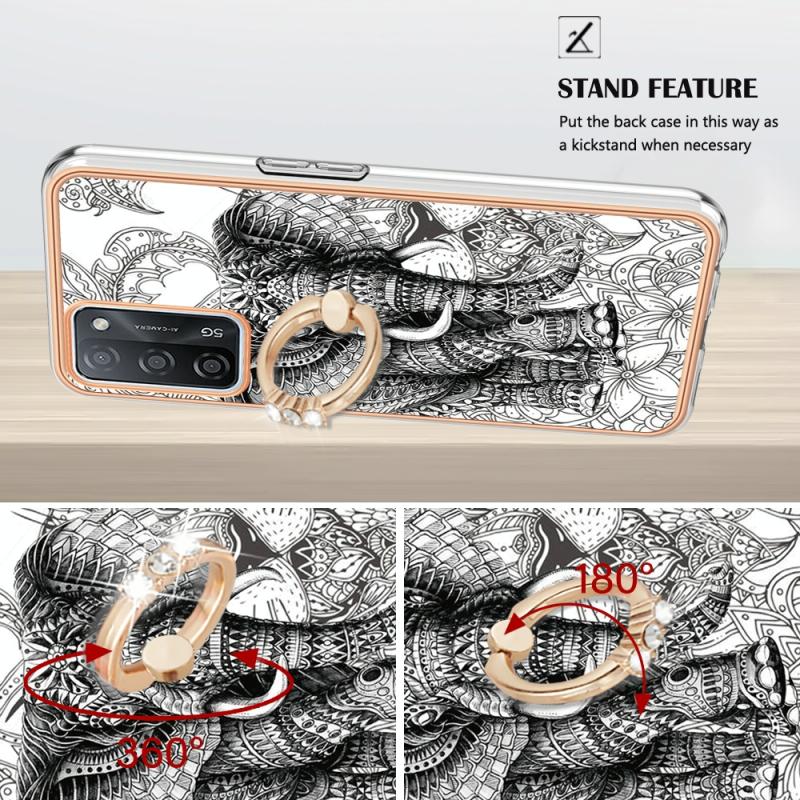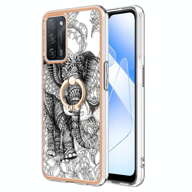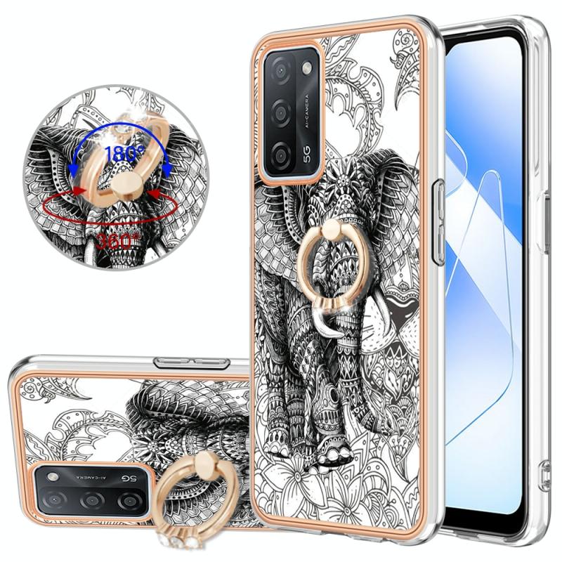 For OPPO A55 5G / A53s 5G / A54 4G Electroplating Dual-side IMD Phone Case with Ring Holder(Totem Elephant)