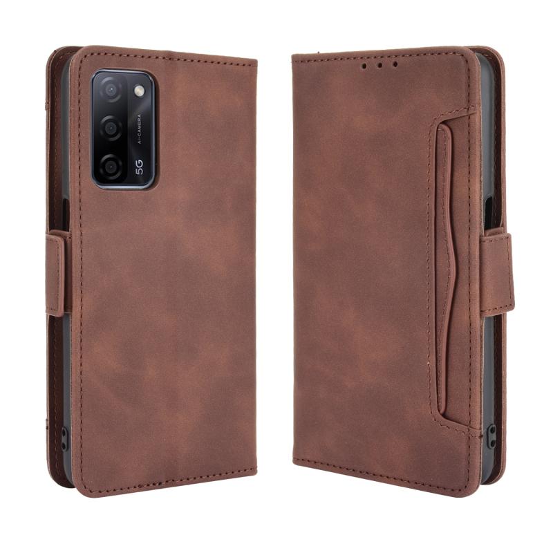 Θήκη δέρματος οριζόντιας αναδίπλωσης με υφή δέρματος μοσχαριού για OPPO A55 5G / A53s 5G με βάση στήριξης & υποδοχές καρτών & κορνίζα φωτογραφιών (Ροζ)