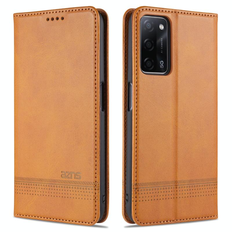 Για Oppo A55 5G AZNS Μαγνητική Δερμάτινη Θήκη Flip με Υφή Μοσχαριού, Οριζόντια, με Θήκες Καρτών & Στήριξη & Πορτοφόλι (Μαύρο) (Κίτρινο)