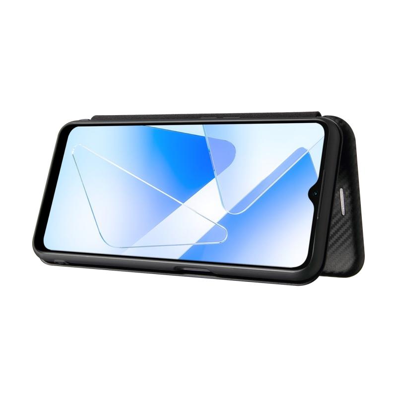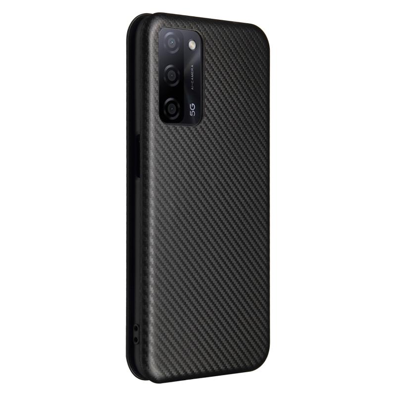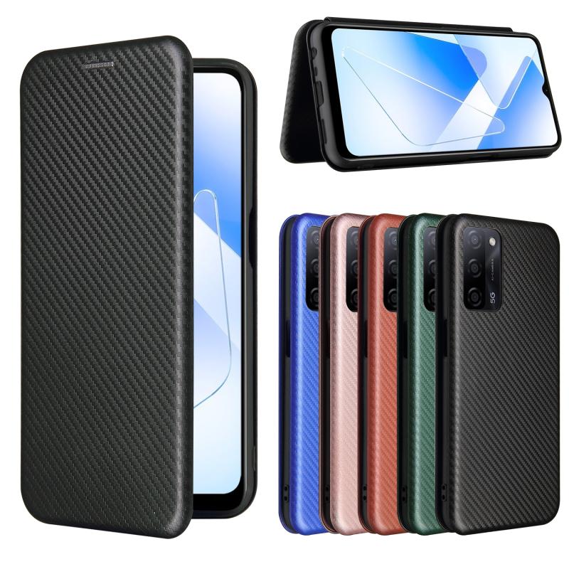 Για OPPO A55 5G Θήκη οριζόντιας αναδίπλωσης από TPU + PC + Δερματίνη PU με υφή ανθρακονήματος και θήκη για κάρτες (Καφέ)