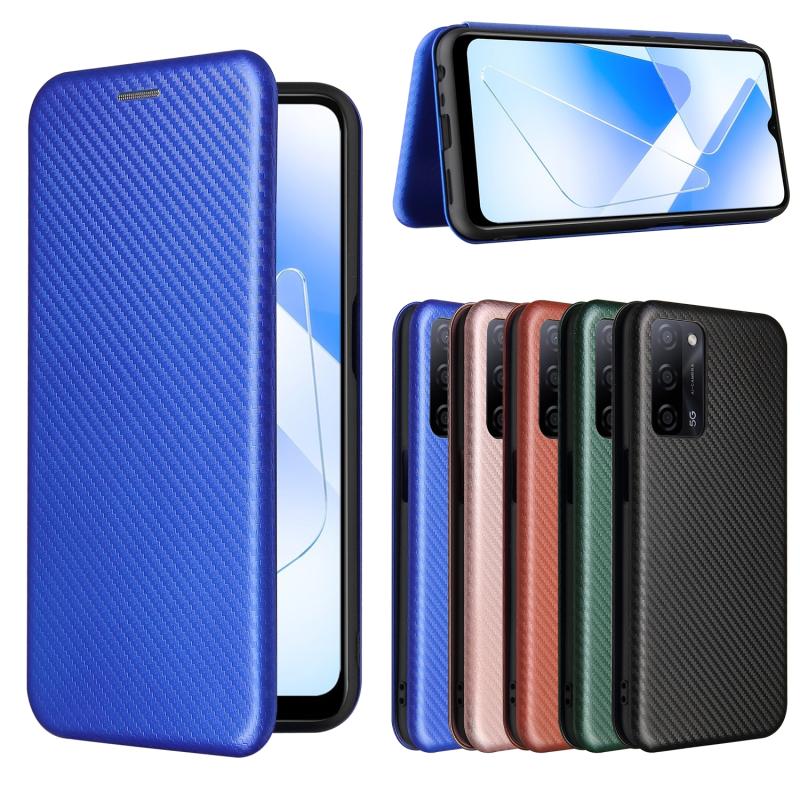 Για OPPO A55 5G Θήκη οριζόντιας αναδίπλωσης από TPU + PC + Δερματίνη PU με υφή ανθρακονήματος και θήκη για κάρτες (Καφέ)