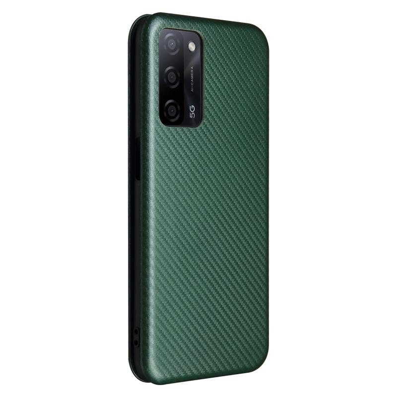 Για OPPO A55 5G Θήκη οριζόντιας αναδίπλωσης από TPU + PC + Δερματίνη PU με υφή ανθρακονήματος και θήκη για κάρτες (Καφέ)