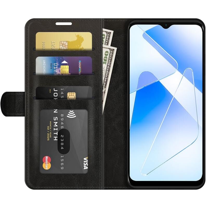 Για OPPO A55 5G R64 Θήκη Προστασίας Flip Μονής Υφής Οριζόντια με Στήριξη & Θήκες Καρτών & Πορτοφόλι & Κορνίζα Φωτογραφιών (Μαύρο)