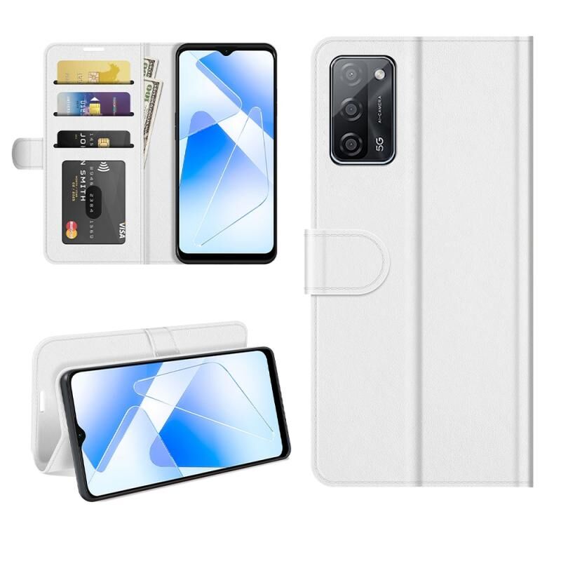 Για OPPO A55 5G R64 Θήκη Προστασίας Flip Μονής Υφής Οριζόντια με Στήριξη & Θήκες Καρτών & Πορτοφόλι & Κορνίζα Φωτογραφιών (Λευκό)