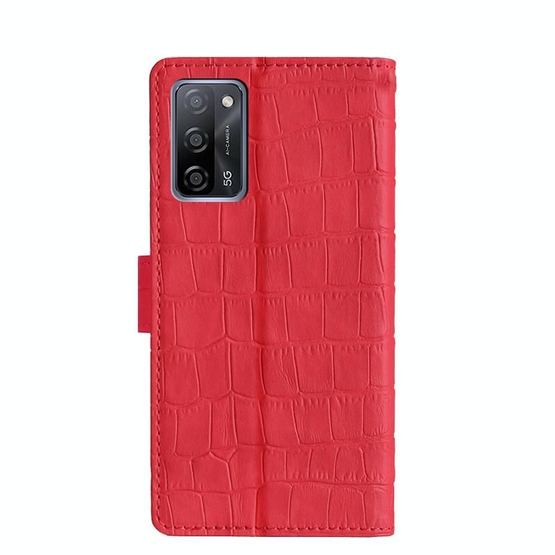 Για OPPO A55 5G Skin Feel Crocodile Texture Μαγνητικό κούμπωμα οριζόντια Flip PU δέρμα υπόθεση με κάτοχο & υποδοχές για κάρτες & πορτοφόλι (Κόκκινο)