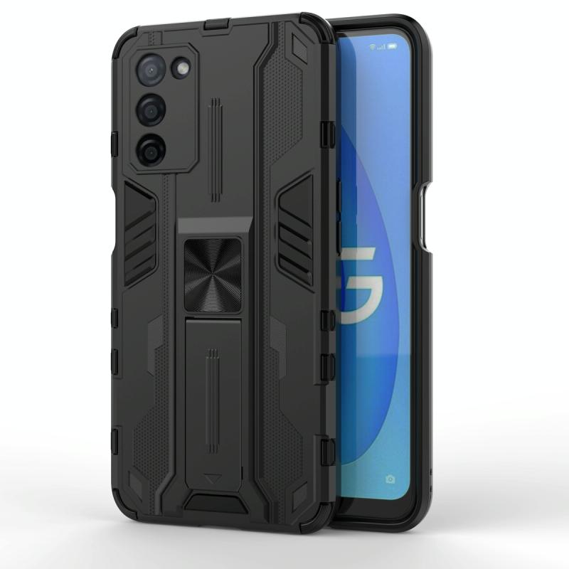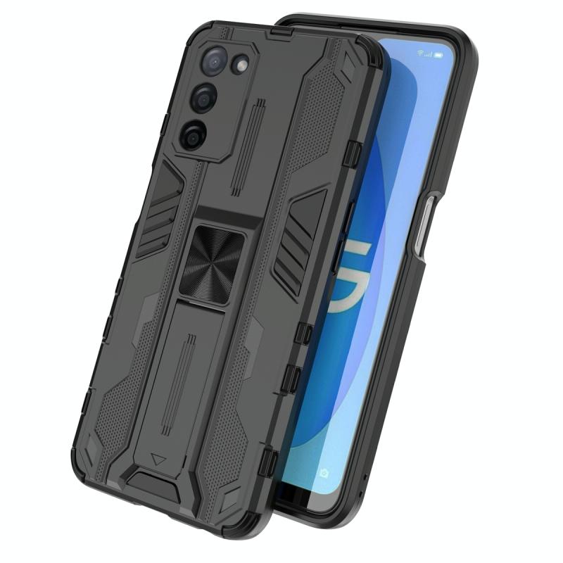 Για OPPO A55 5G Υπερηχητική θήκη PC + TPU αντικραδασμική προστατευτική με βάση στήριξης (Μαύρο)