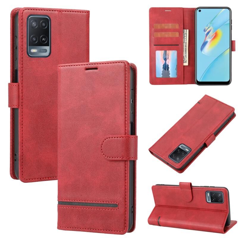 Για OPPO A56 5G / A54 4G Κλασικό πορτοφόλι Flip δερμάτινη θήκη τηλεφώνου (κόκκινο)