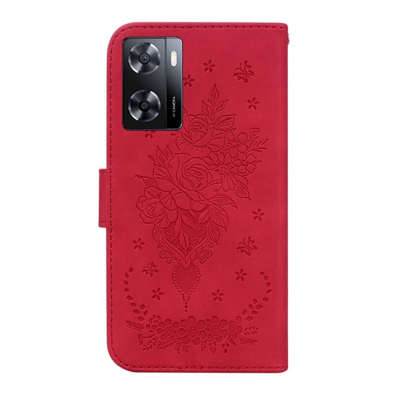 Θήκη τηλεφώνου από ανάγλυφο δέρμα Butterfly Rose για OPPO A57 2022 4G/A57 2022 5G/Realme Q5i/Realme V23 5G/Realme Narzo 50 5G/A77 5G (Κόκκινο)