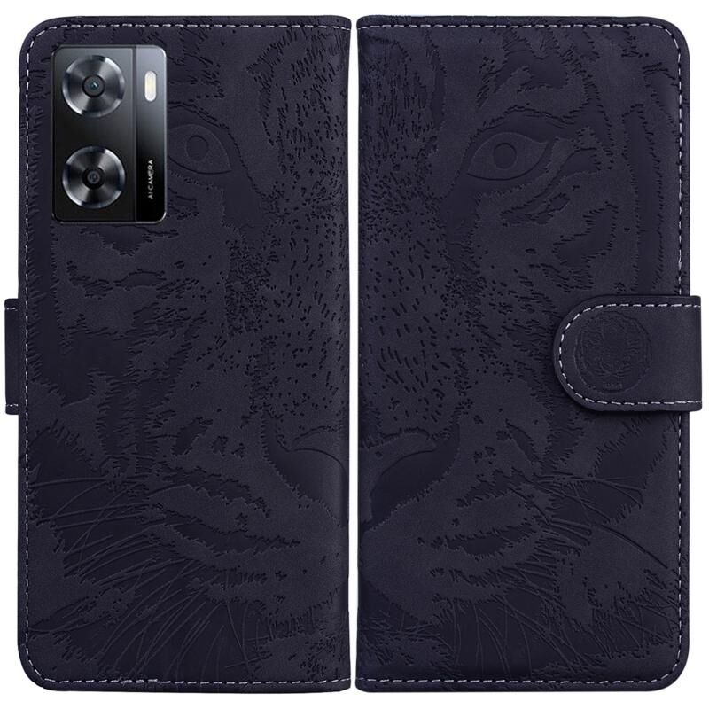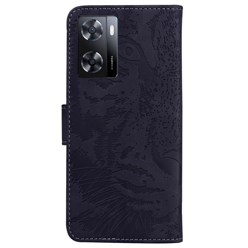 Θήκη τηλεφώνου από δέρμα με οριζόντιο άνοιγμα και ανάγλυφο σχέδιο τίγρης για OPPO A57 2022 4G/A57 2022 5G/Realme Q5i/Realme V23 5G/Realme Narzo 50 5G/A77 5G (Μαύρο)