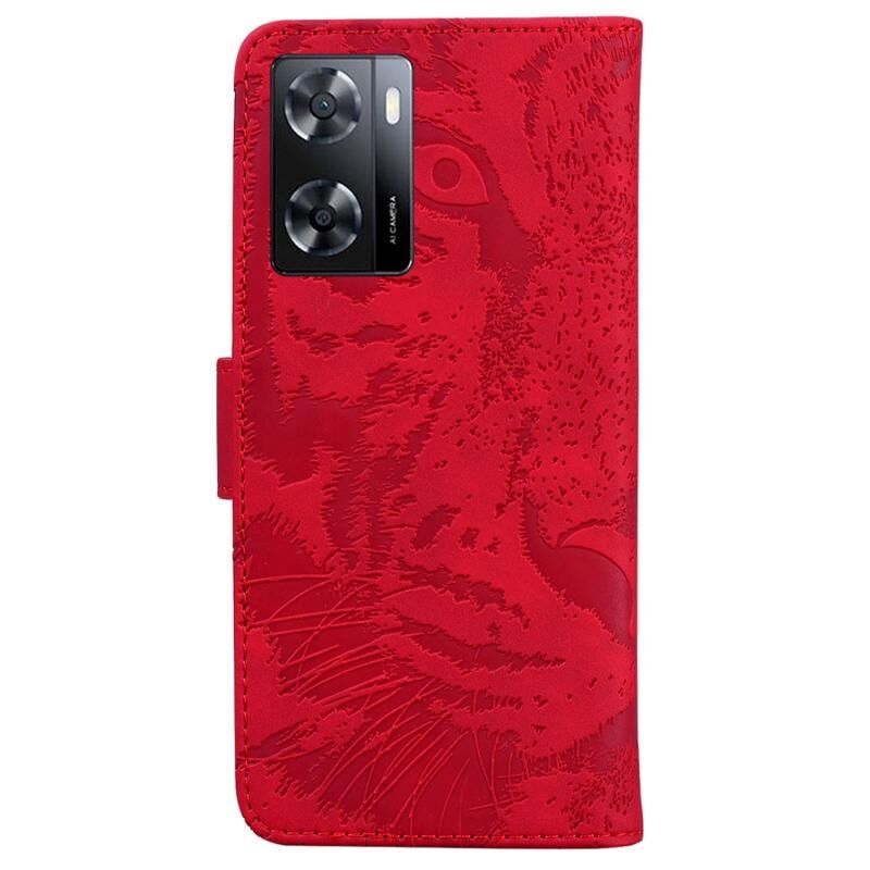 Θήκη τηλεφώνου από δέρμα με οριζόντιο άνοιγμα και ανάγλυφο σχέδιο τίγρης για OPPO A57 2022 4G/A57 2022 5G/Realme Q5i/Realme V23 5G/Realme Narzo 50 5G/A77 5G (Μαύρο)