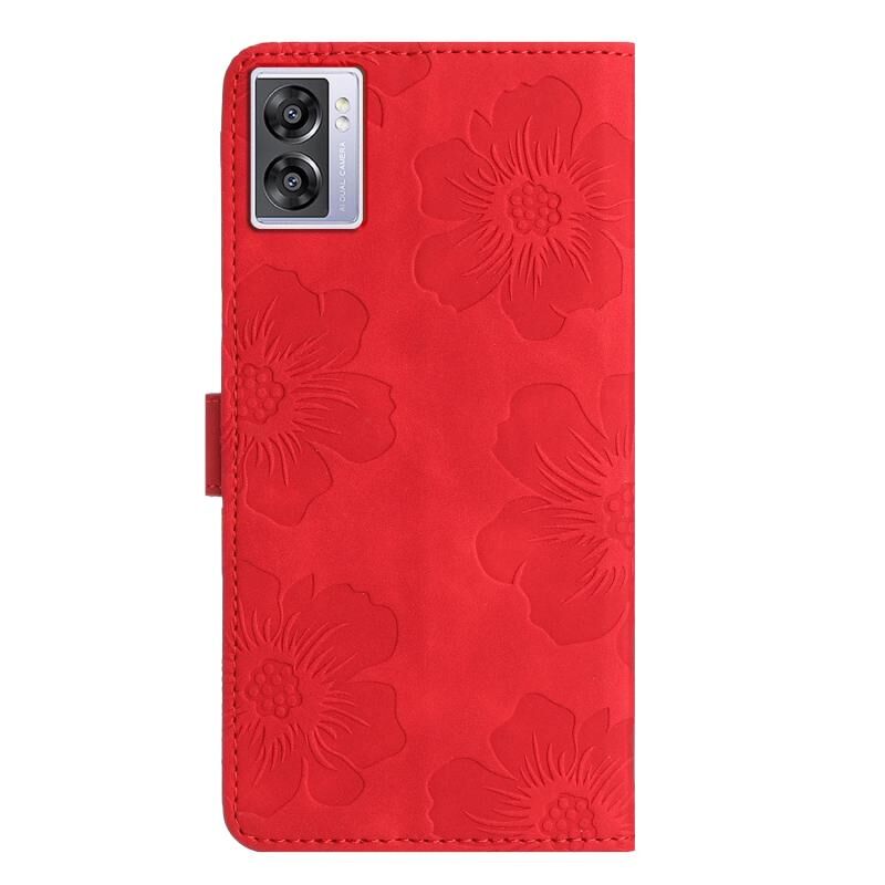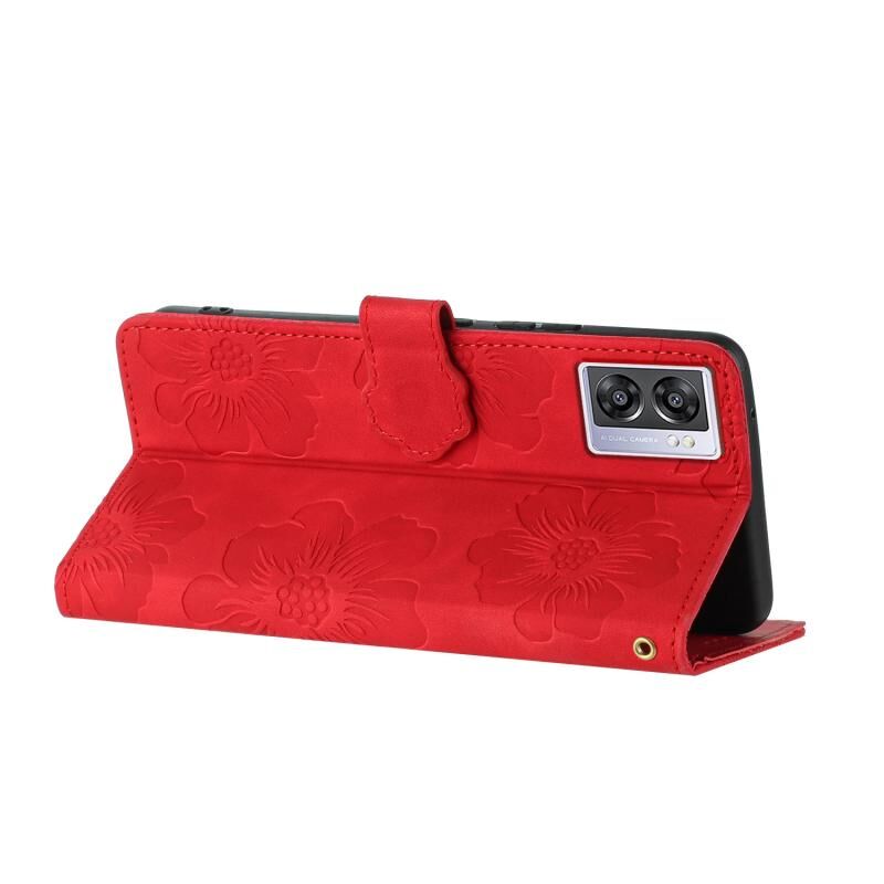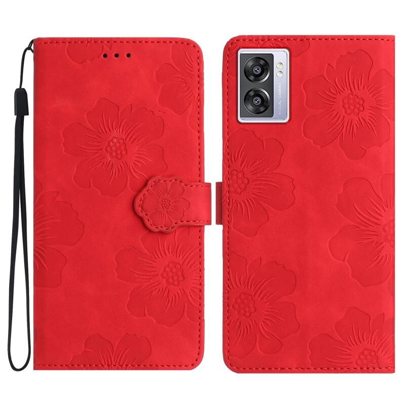 Για OPPO A57 2022 / A77 5G λουλούδι ανάγλυφο μοτίβο δερμάτινη θήκη τηλεφώνου (κόκκινο)