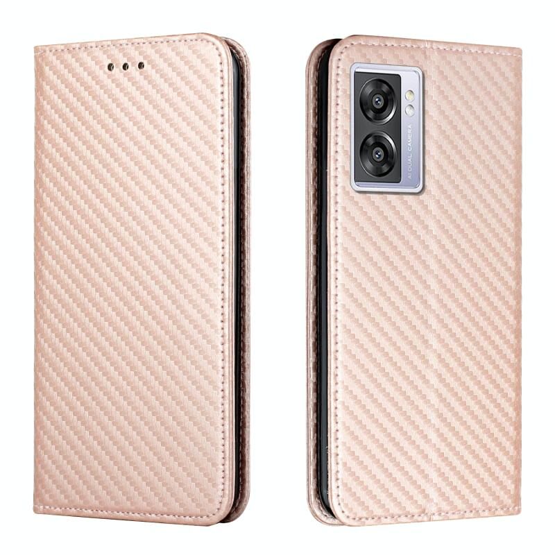 Για OPPO A57 2022 Carbon Fiber Texture Μαγνητική Flip δέρμα τηλέφωνο υπόθεση (Rose Gold)