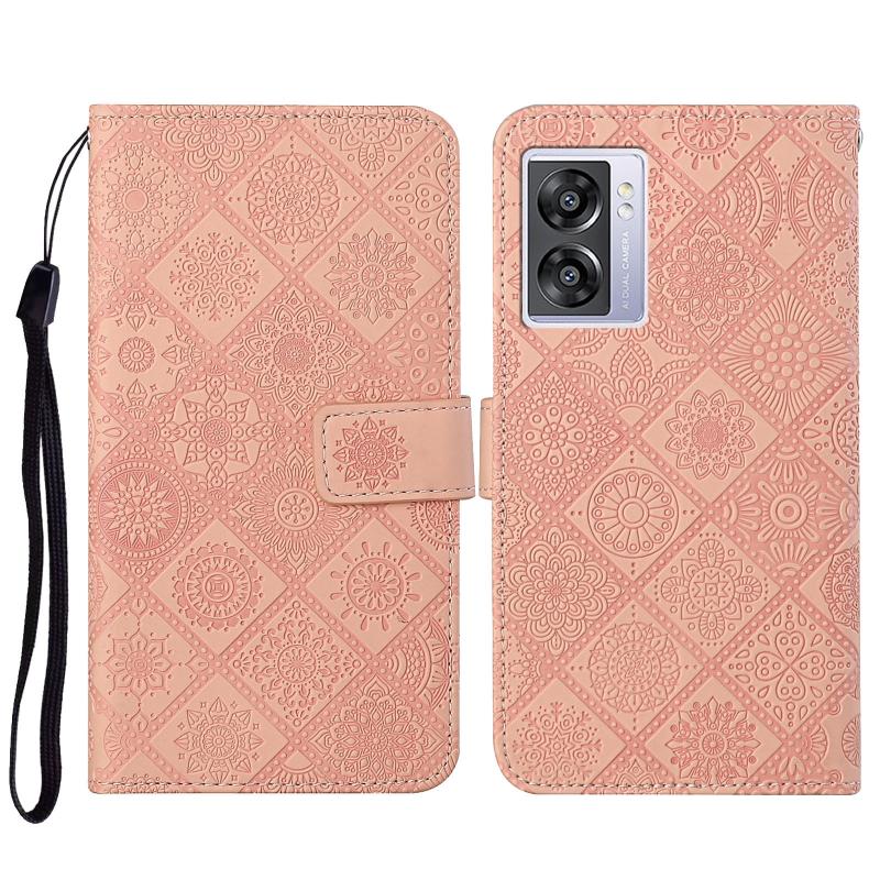Θήκη τηλεφώνου από δέρμα με ανάγλυφο εθνοτικό σχέδιο για OPPO A57 2022 (Μωβ)